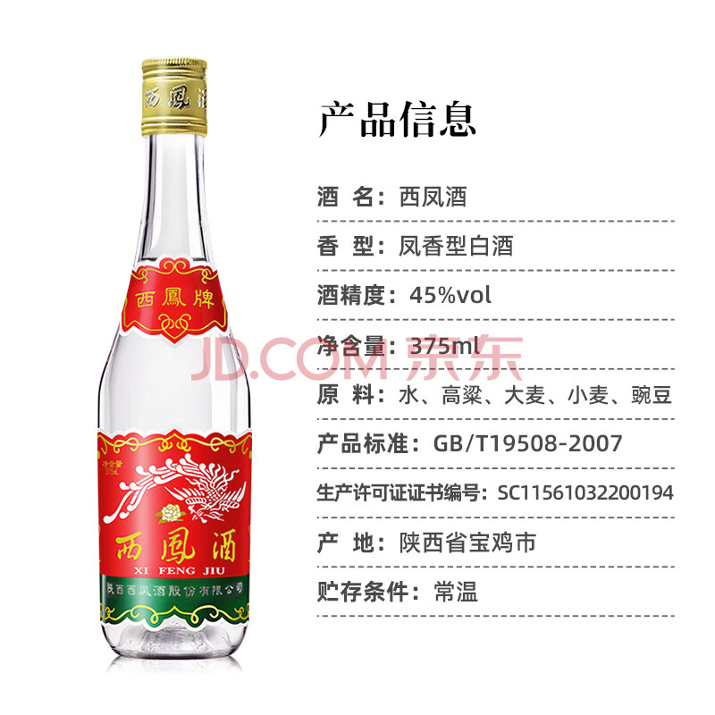 商品相册:西凤酒 西凤375 45度 375ml*20瓶 整箱装 凤香型白酒第