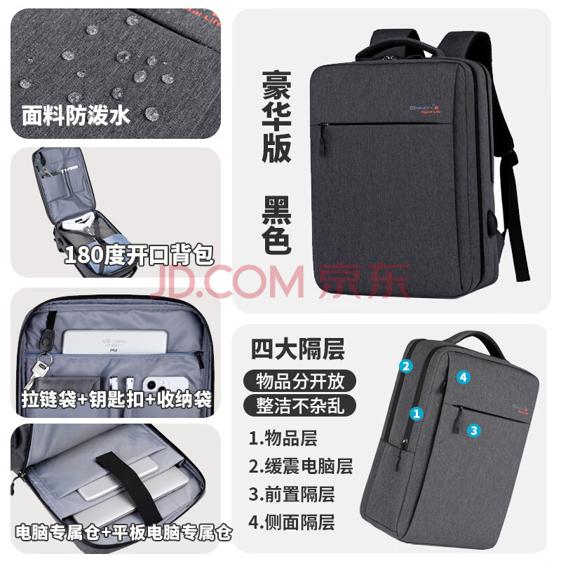 商品相册:BRINCH电脑背包17/17.3英寸商务旅行大容量防震适用苹果华为笔记本电脑第