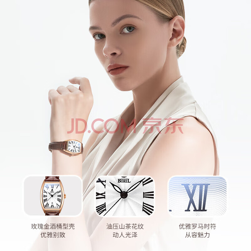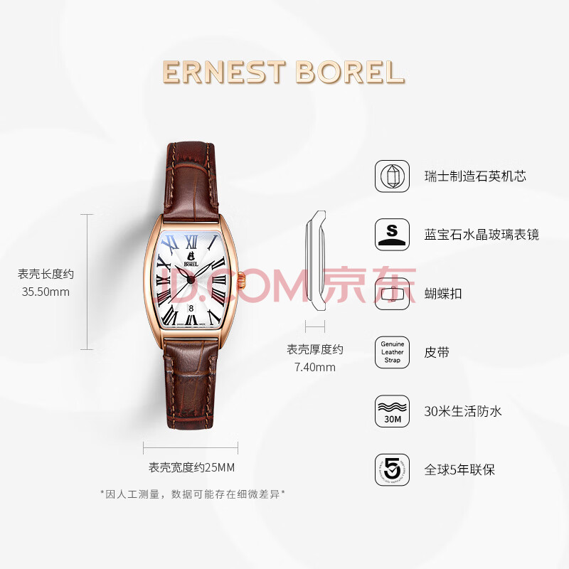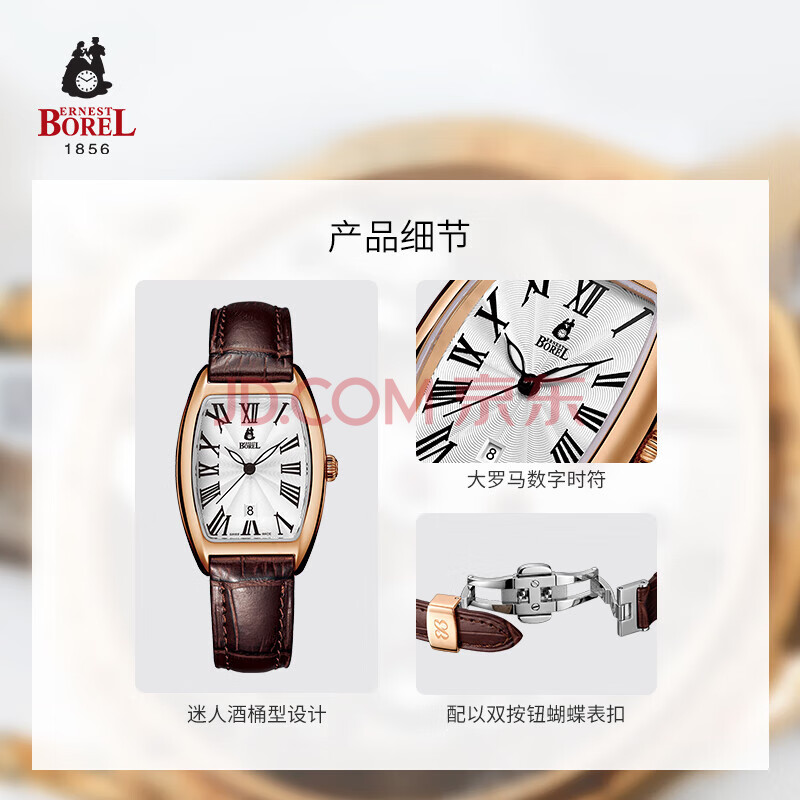 商品相册:依波路(ERNEST BOREL)瑞士女士手表 女神节礼物 雅仕系列专柜同款 酒桶皮带石英女表第