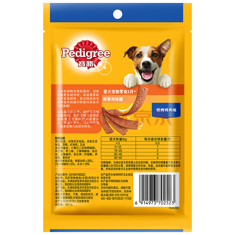 商品相册:宝路肉干狗零食肉脯 全犬种肉脯肉条烧烤鸡肉味全犬种80g*12整盒装第