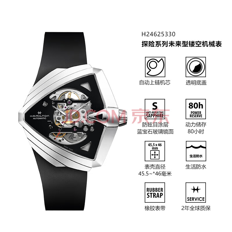 商品相册:汉米尔顿(Hamilton)探险系列未来型盾型镂空机械表橡胶带 瑞士手表男士高端手表腕表第