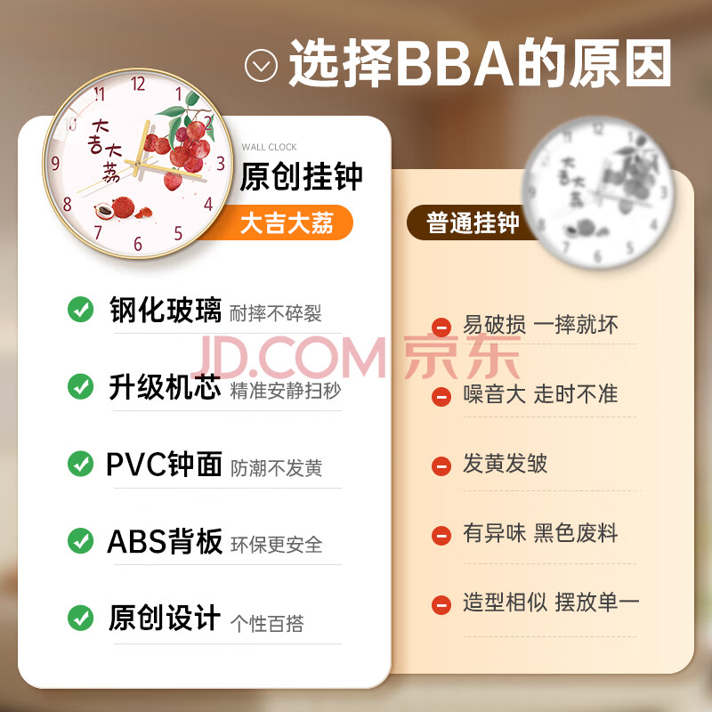 商品相册:BBA挂钟新中式大吉大荔客厅书房卧室餐厅家用创意钟表时钟30cm第
