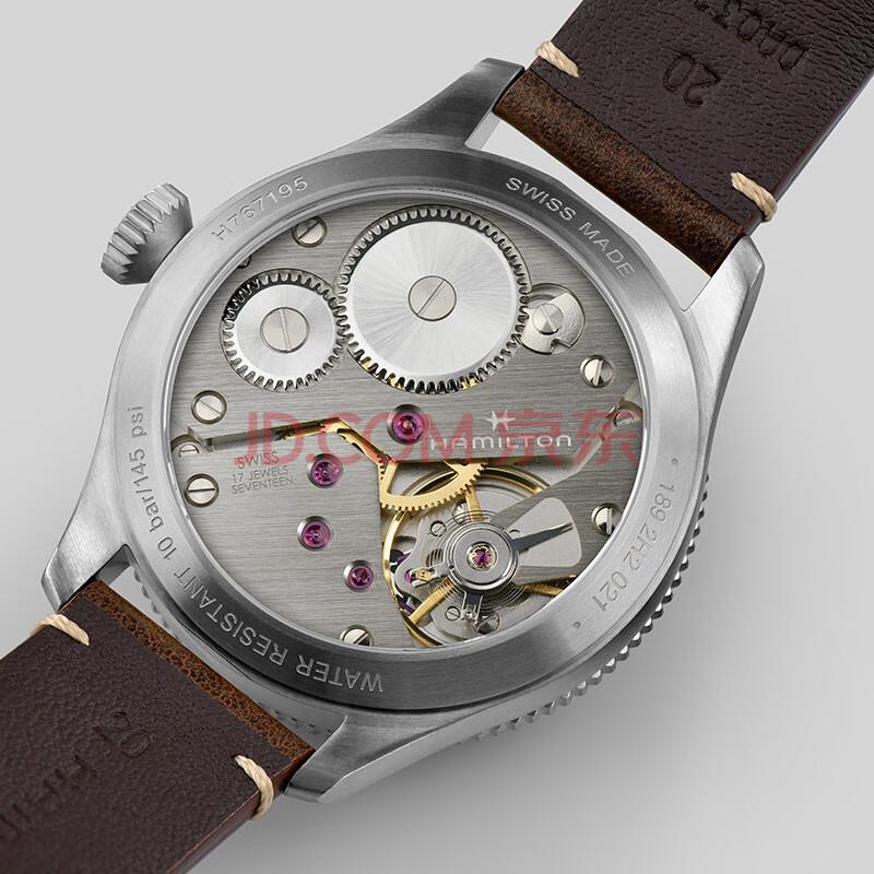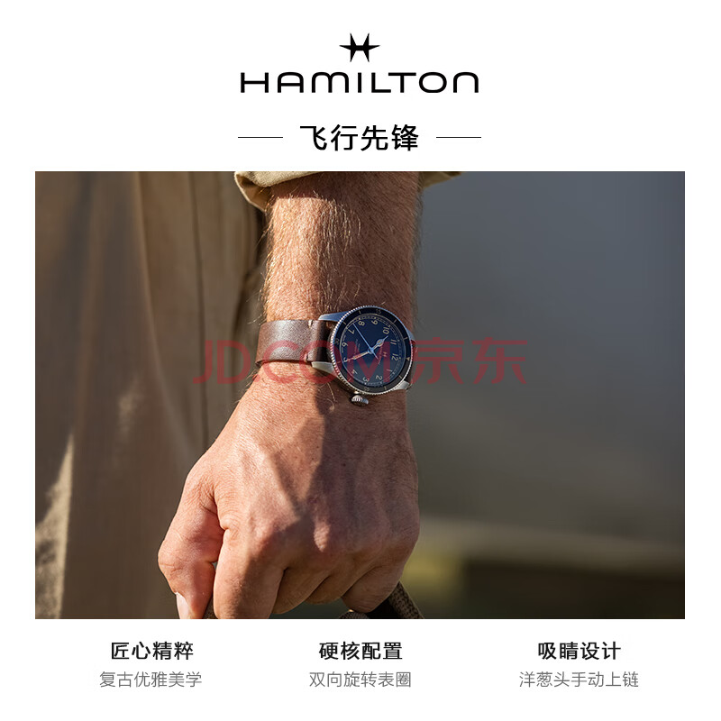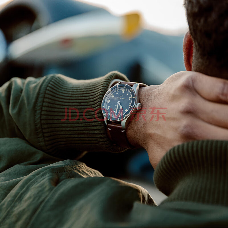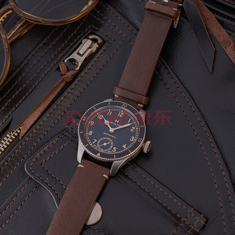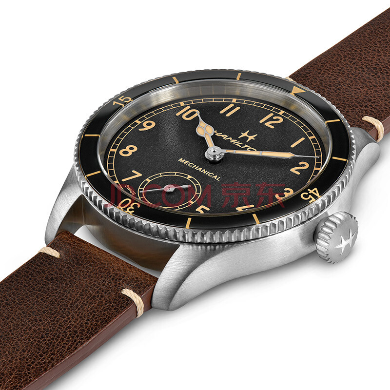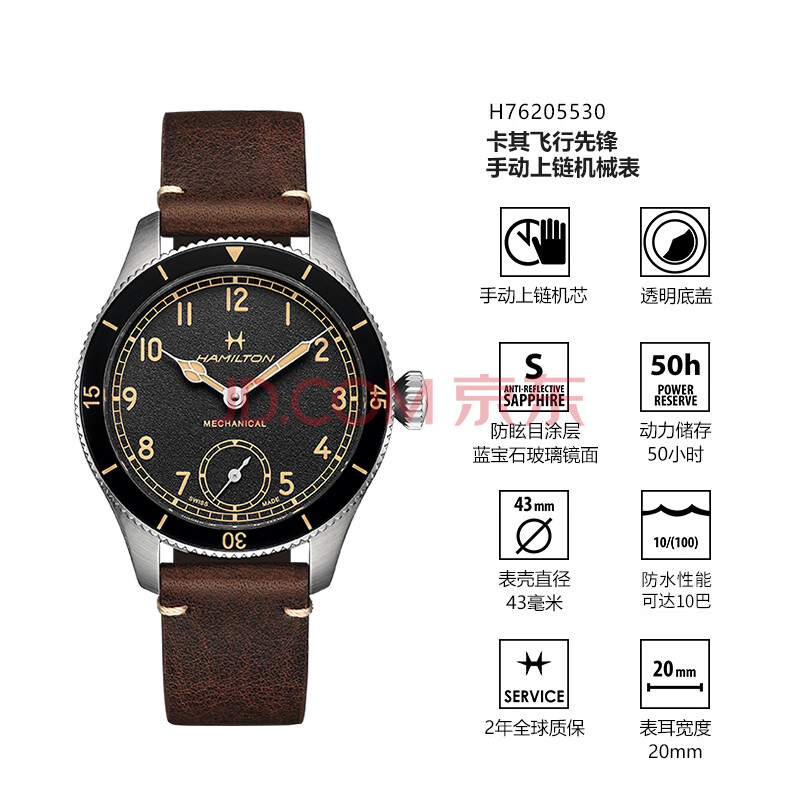 商品相册:汉米尔顿(Hamilton)卡其航空飞行先锋手动机械表43黑盘皮带男士手表瑞士表军表礼物第