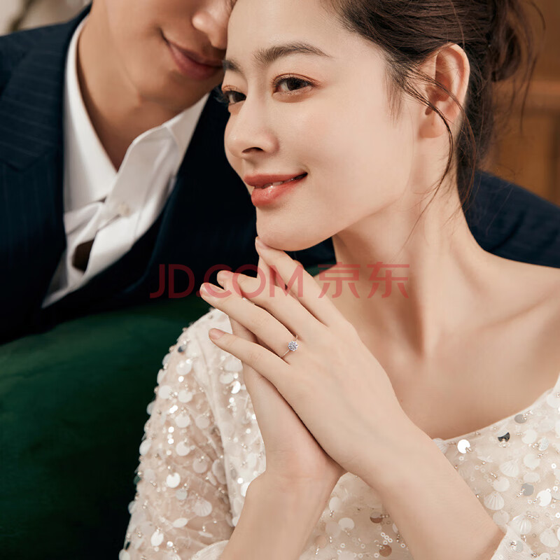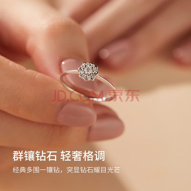 商品相册:周六福钻戒女捧花订婚18k金钻石戒指KGDB021530 主钻约5分 15号生日礼物第