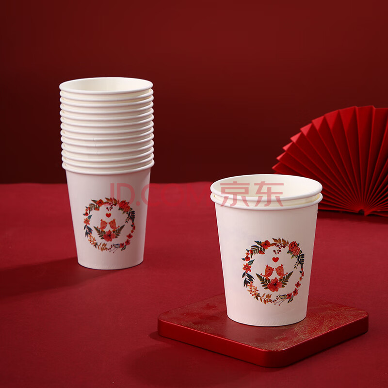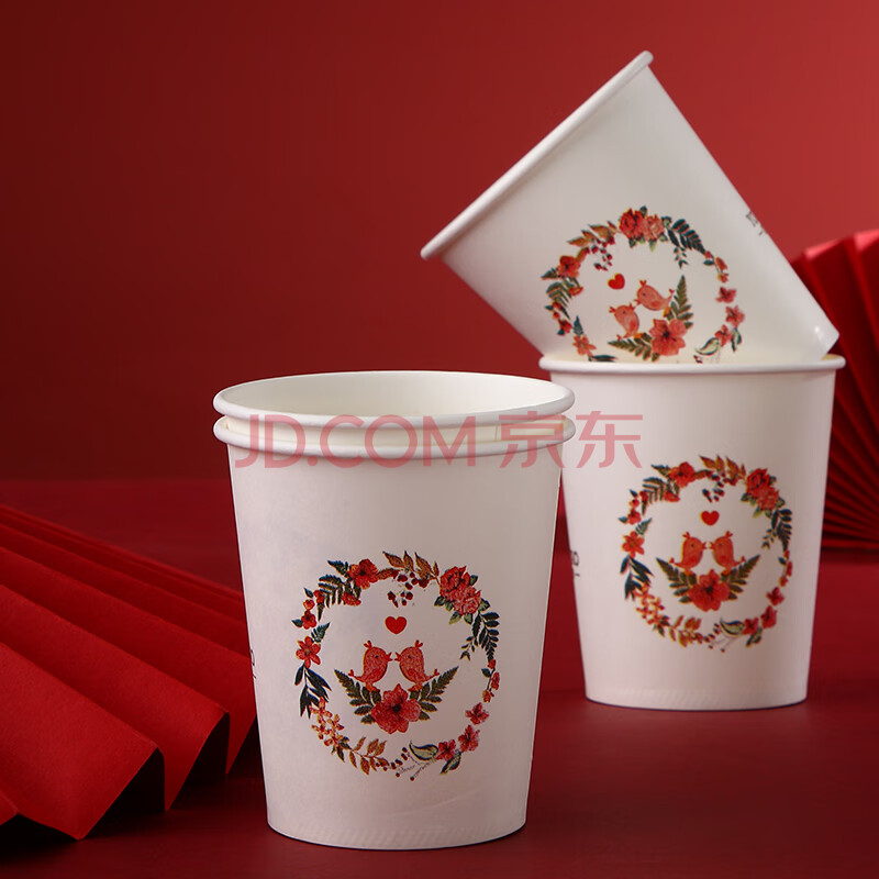 商品相册:优奥纸杯一次性杯子235ml*100只装加厚结婚喜庆乔迁红色水杯食品级第1张/共8