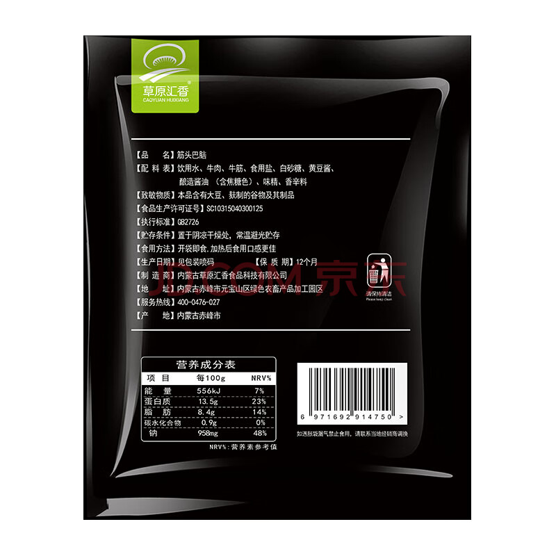 商品相册:草原汇香 筋头巴脑500g 加热即食 内蒙牛肉特产牛筋酱卤熟食零食火锅食材第