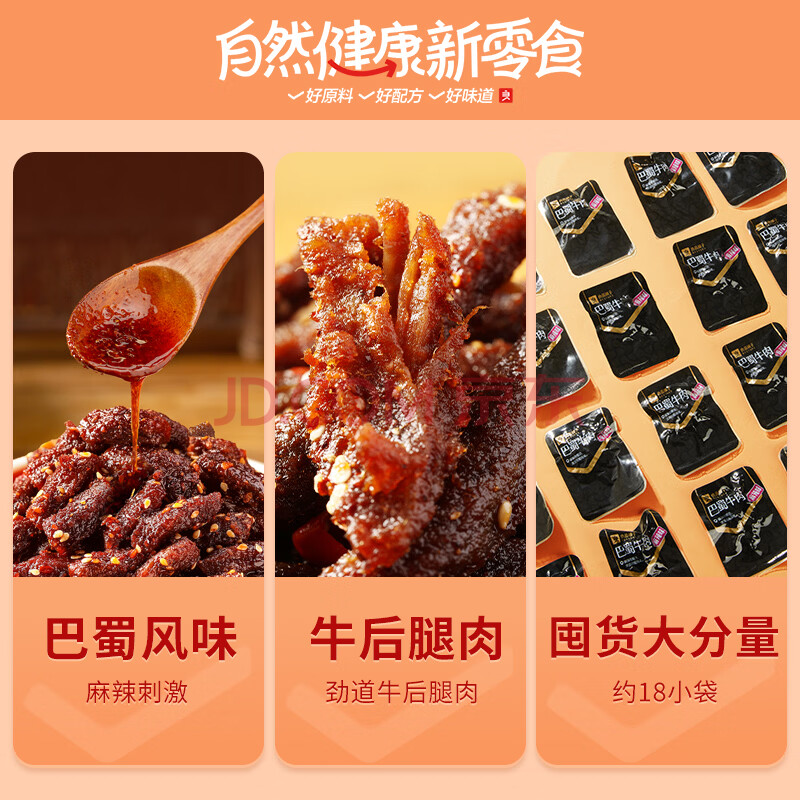 商品相册:良品铺子巴蜀牛肉麻辣味400g 四川牛肉干牛肉条 解馋冷吃 休闲零食第