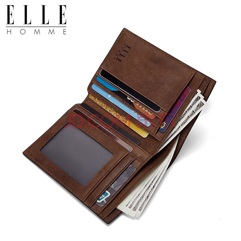商品相册:ELLE HOMME 钱包竖款头层牛皮多卡位复古两折票夹0330 生日礼物送男友第