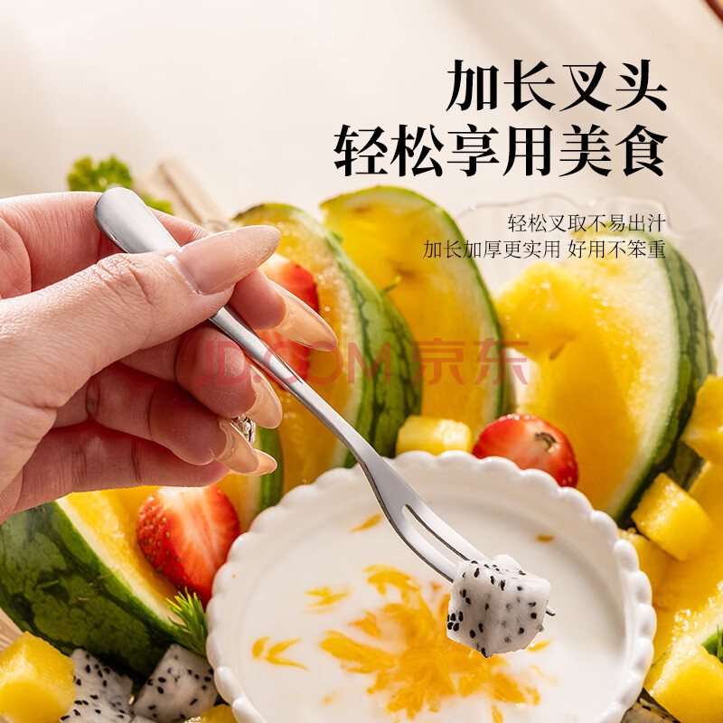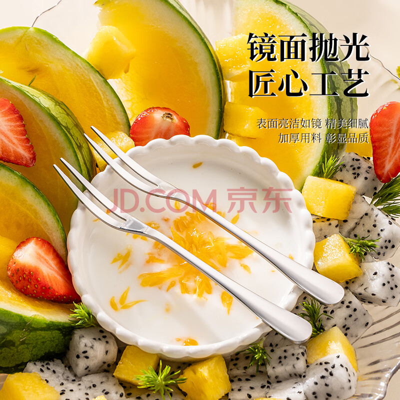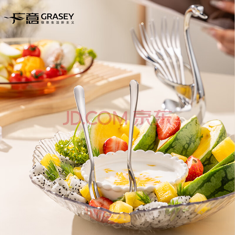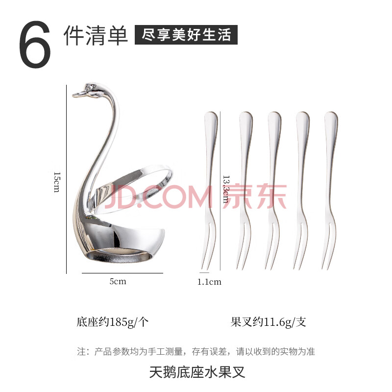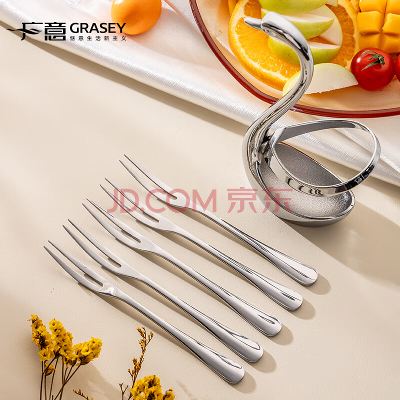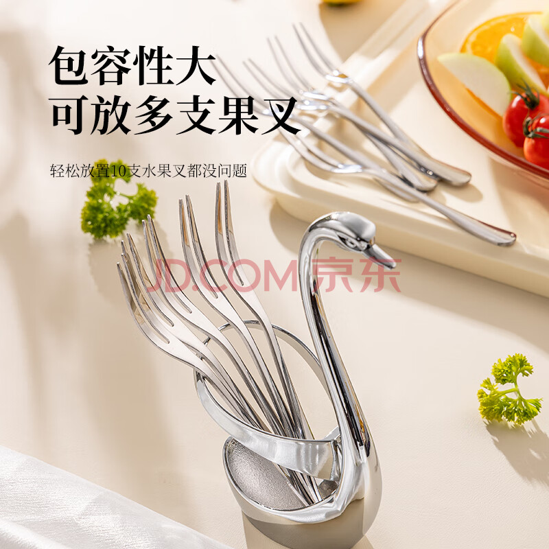 商品相册:广意不锈钢水果叉点心蛋糕月饼叉甜品叉创意天鹅座+小叉子5支装GY7557第