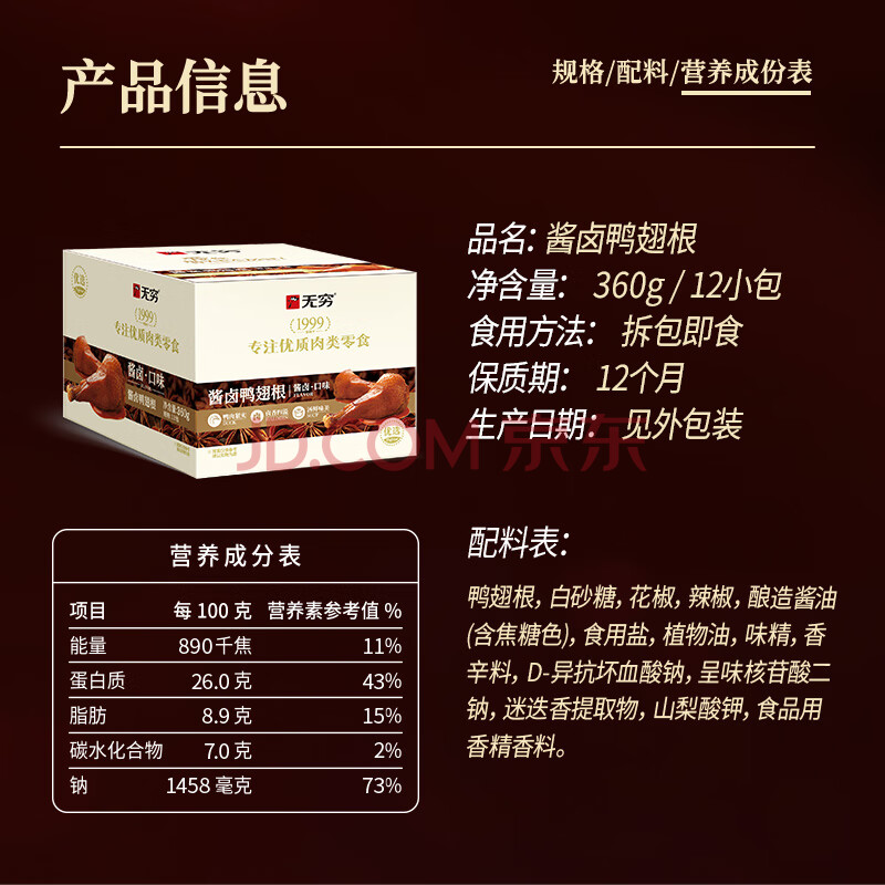 商品相册:无穷 酱香卤鸭翅根 肉脯送礼办公室休闲零食小吃 360g/12小包第