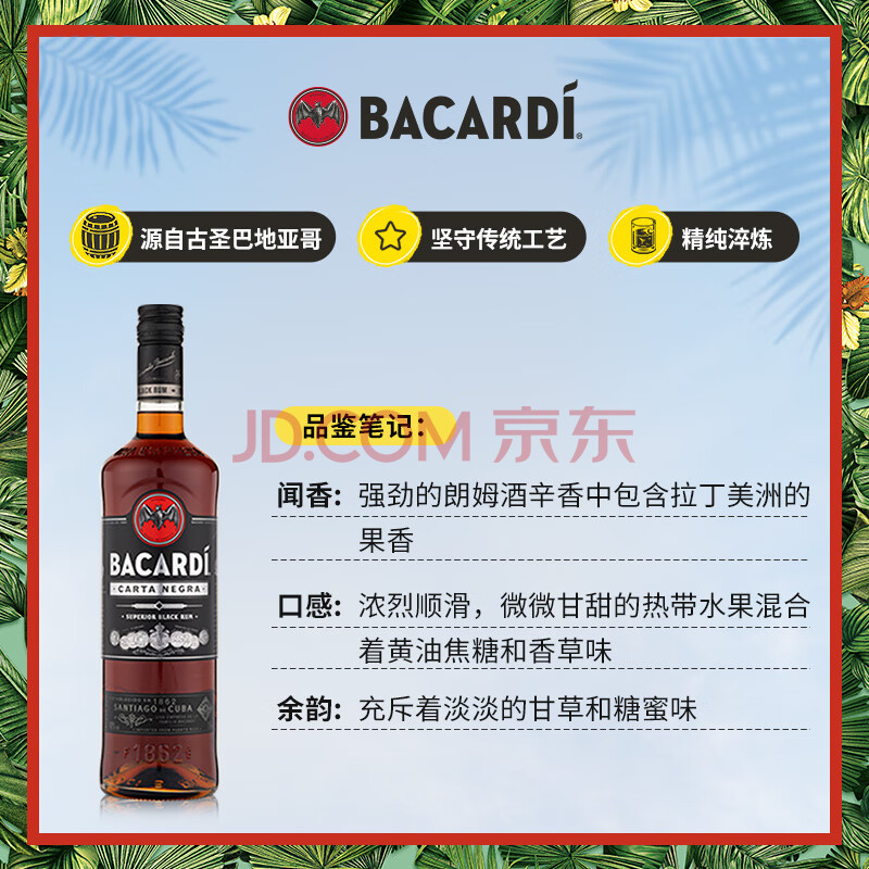 商品相册:百加得(Bacardi)黑朗姆酒 洋酒 莫吉托 基酒调酒 500ml 烘焙 送礼第