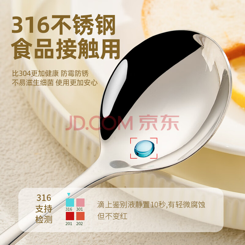 商品相册:广意勺子 汤勺316不锈钢食品级餐具雅致圆勺【耐腐耐锈】2支装GY7749第