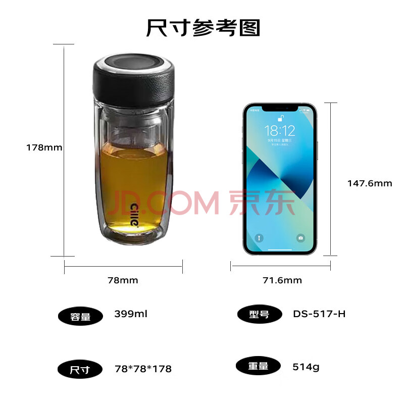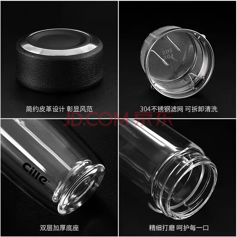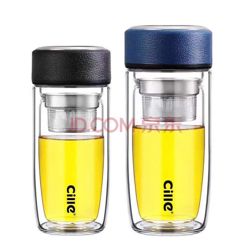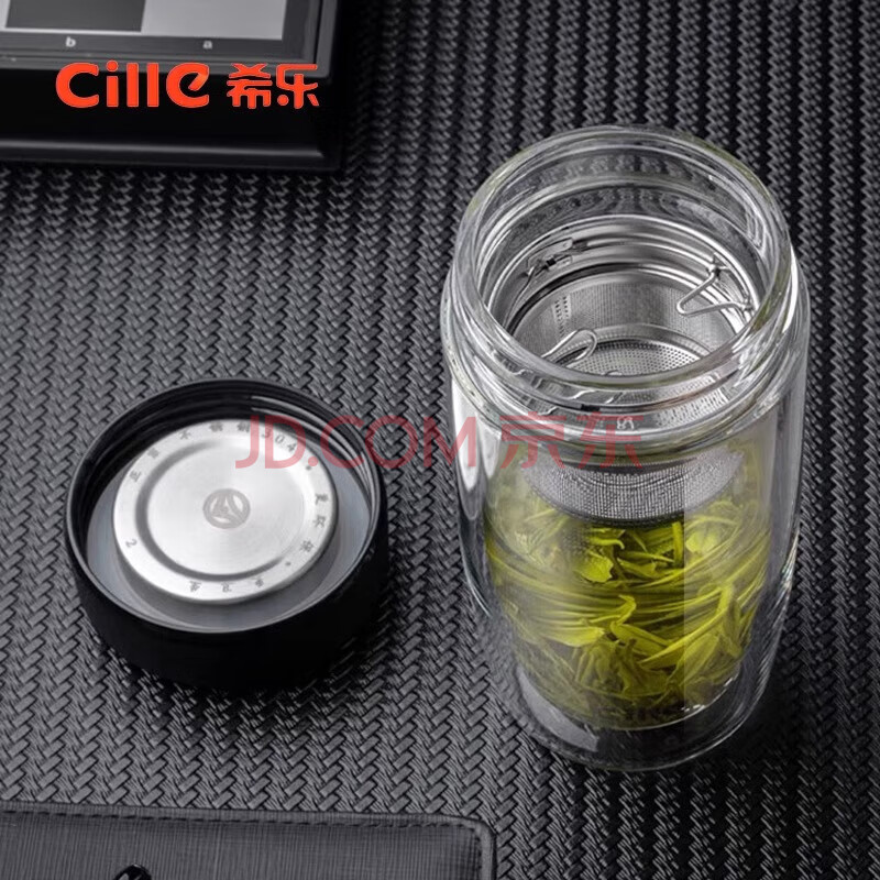 商品相册:希乐玻璃杯双层玻璃水杯高颜值男士商务办公茶水分离杯便携泡茶杯子第