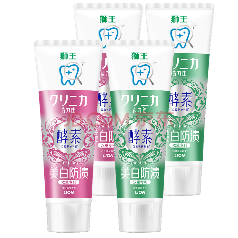 商品相册:狮王(lion)齿力佳进口酵素美白牙膏鲜果+百花 130g*4第