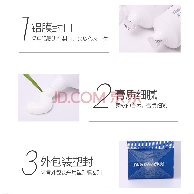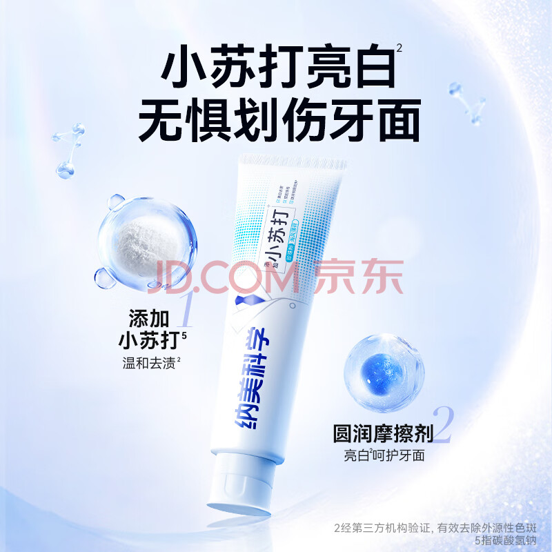 商品相册:纳美(Namei)小苏打牙膏亮白清新口气含氟牙齿亮白牙龈护理赠牙刷海盐套装480g第