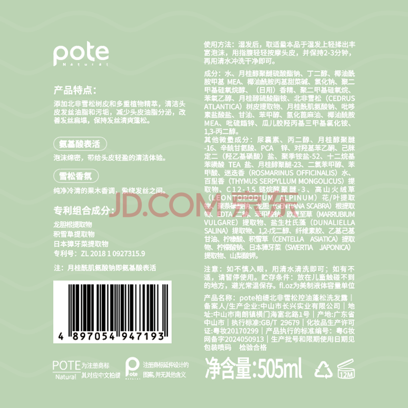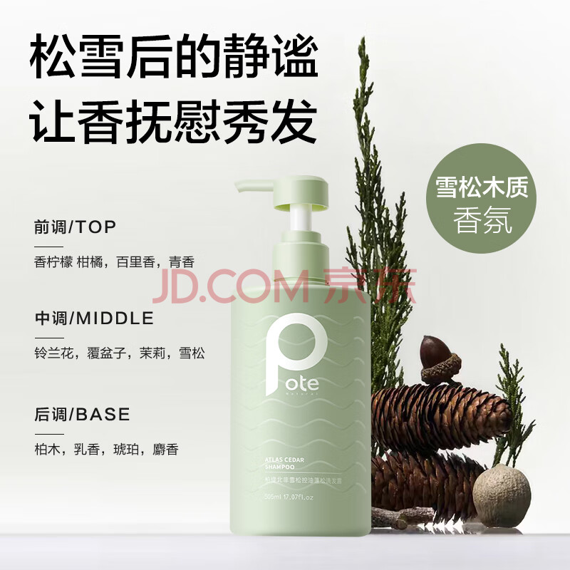 商品相册:柏缇北非雪松控油蓬松洗发水 清爽去屑止痒留香氨基酸洗发露 505ml 第