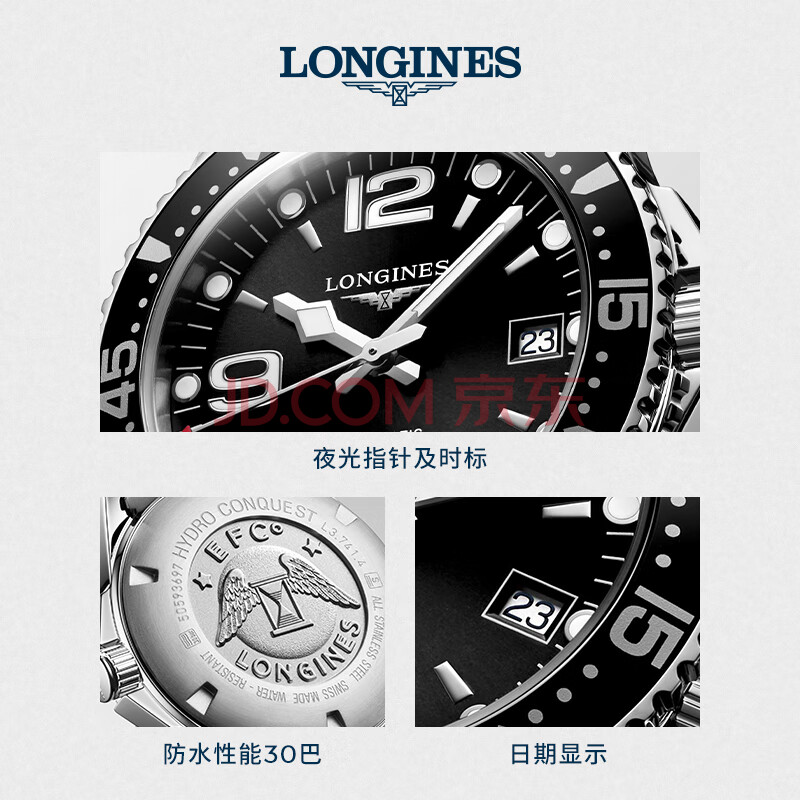 商品相册:浪琴(LONGINES)瑞士手表 康卡斯潜水系列 男士钢带机械表L37414566第