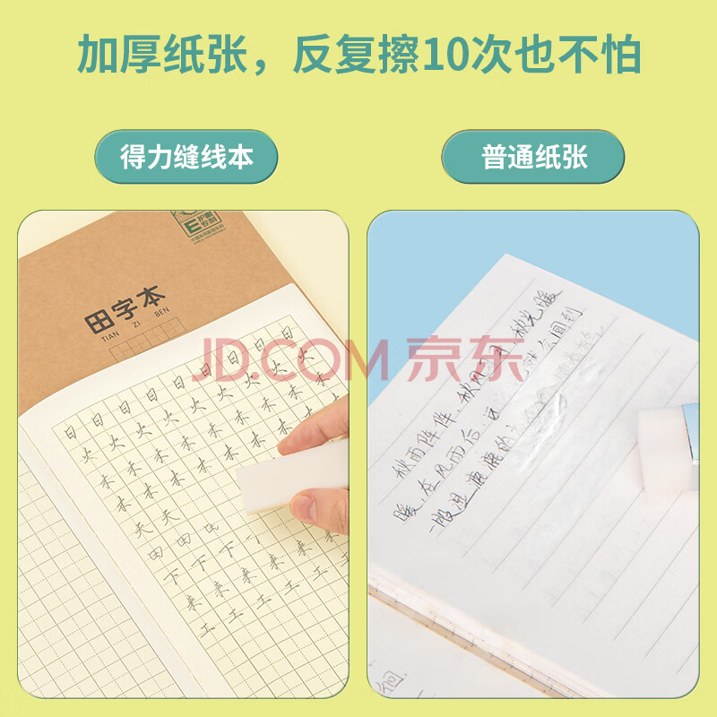 商品相册:得力(deli)护眼作业本4本装A5/30张田字格本子小学生作业本本子13行9列PFA530第
