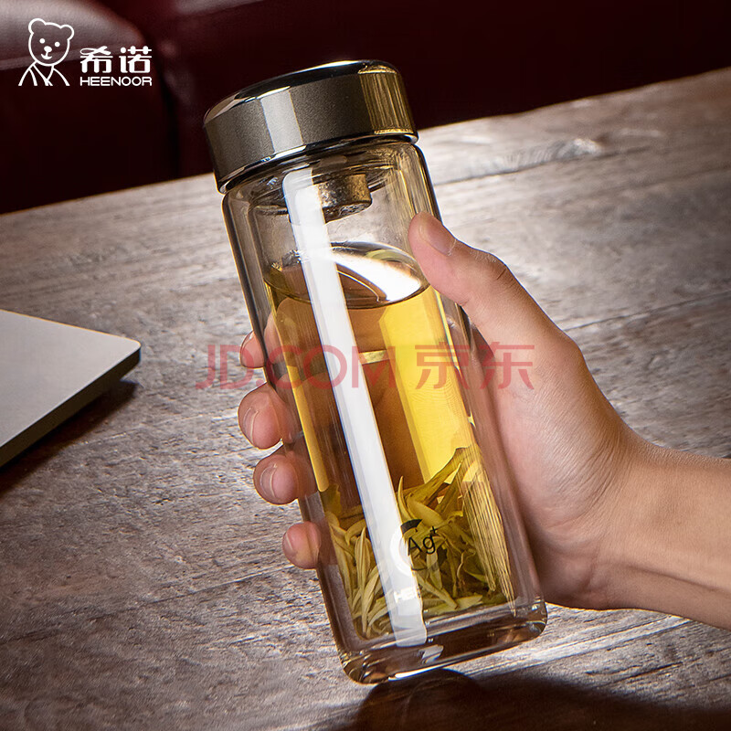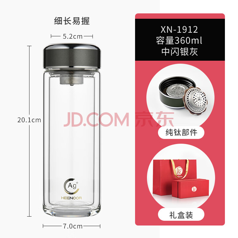 商品相册:希诺抗菌玻璃杯双层办公水杯男高档泡茶杯子XN-1912中闪银灰 360mL第