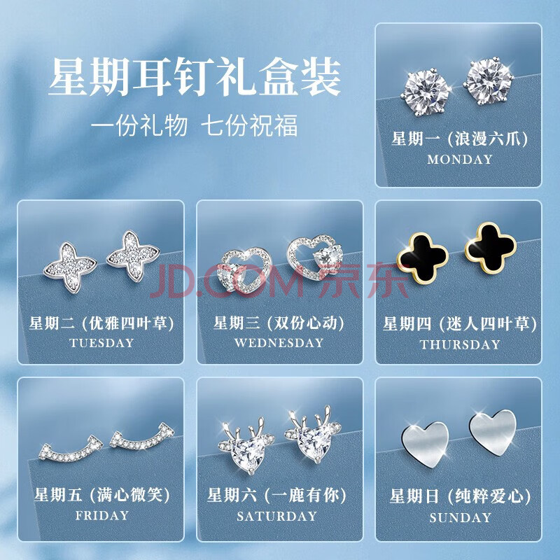 商品相册:N2it银针一周耳钉礼盒星期耳钉女士套装养耳洞女生生日礼物送女朋友第