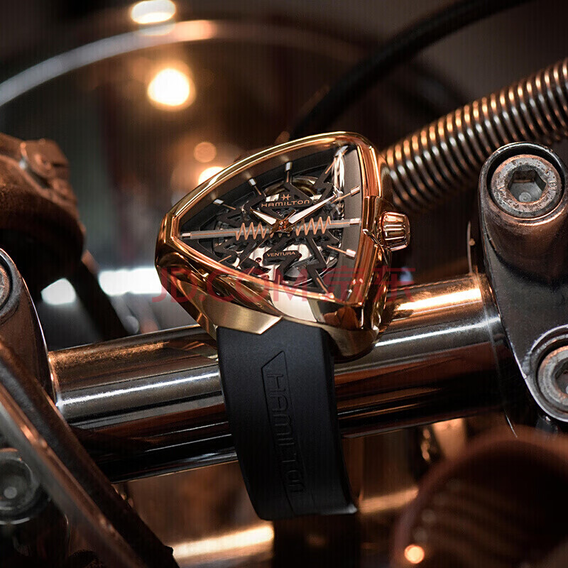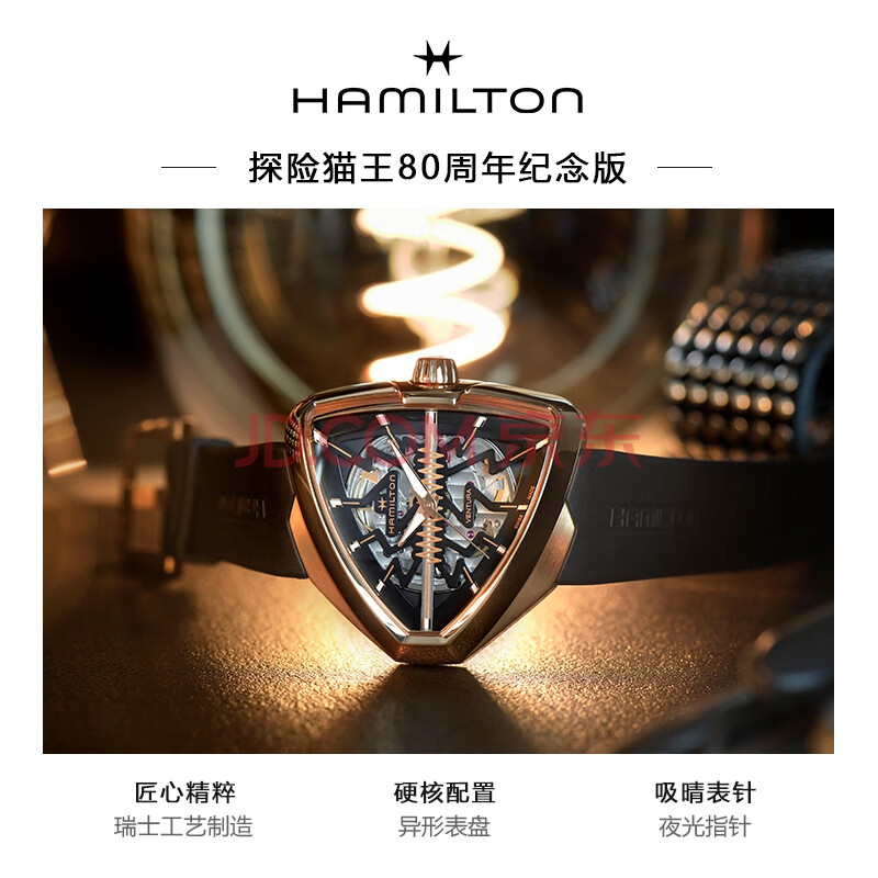 商品相册:汉米尔顿(Hamilton)汉密尔顿探险猫王80周年"大金猫"镂空机械表男士金色立体盾型表壳第