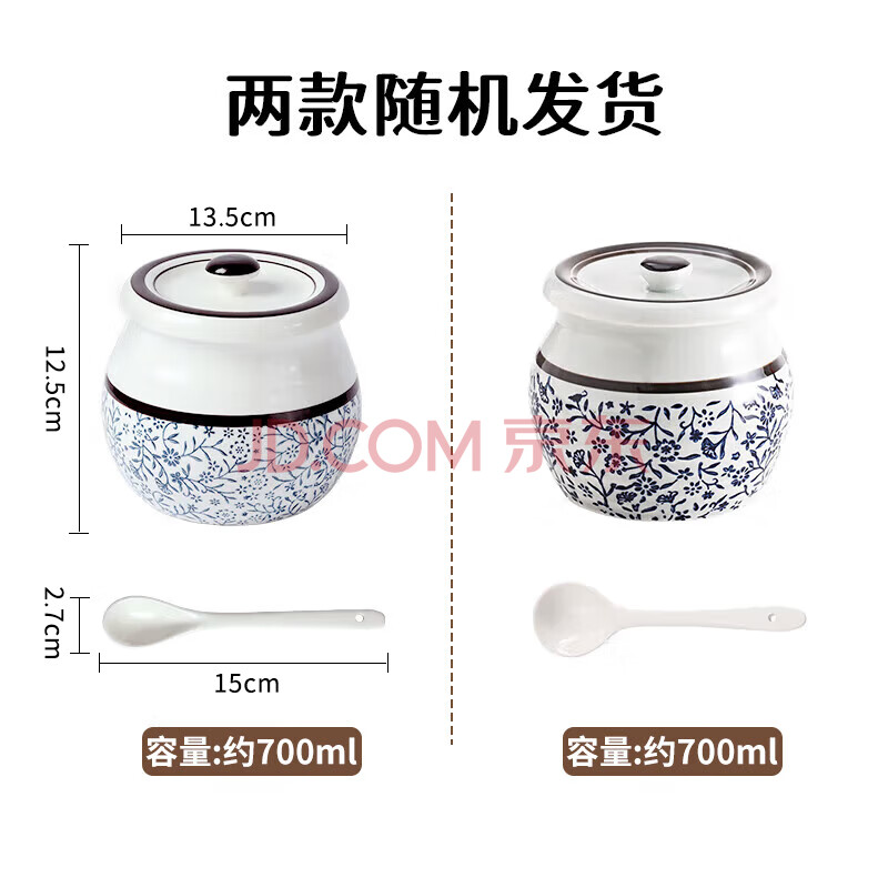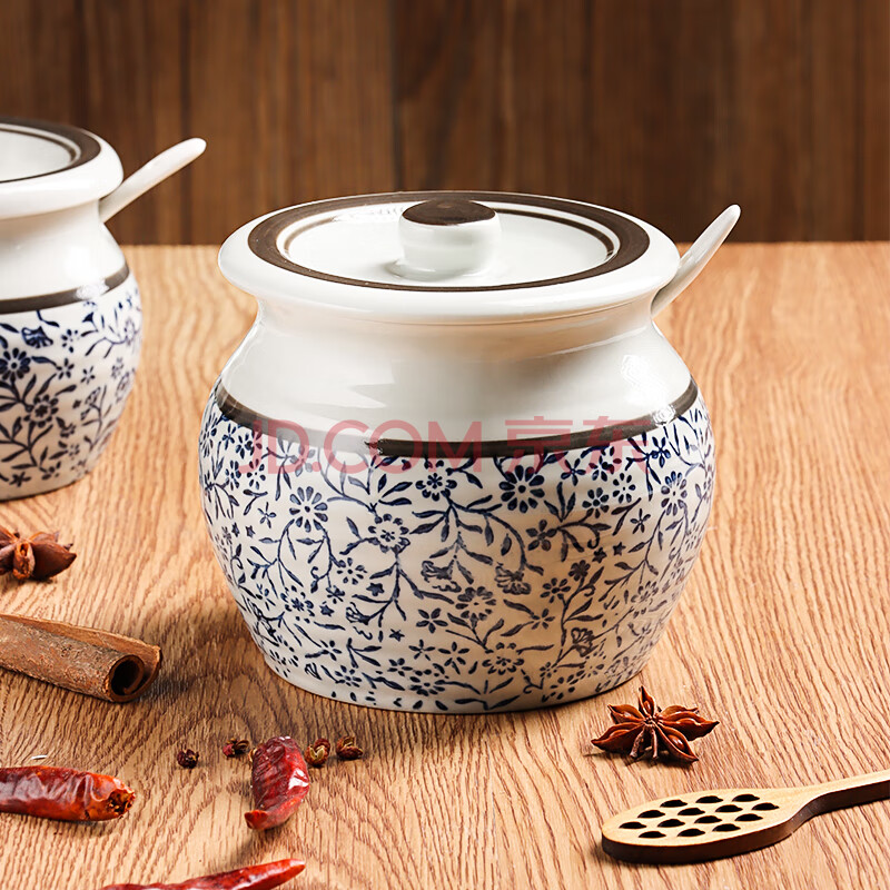 商品相册:拜杰猪油罐陶瓷大容量耐高温调味罐猪油缸辣椒罐中式猪油盅+勺子700ml第