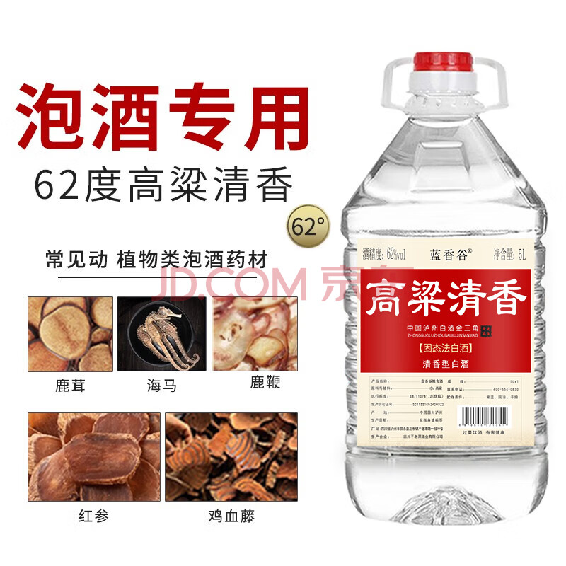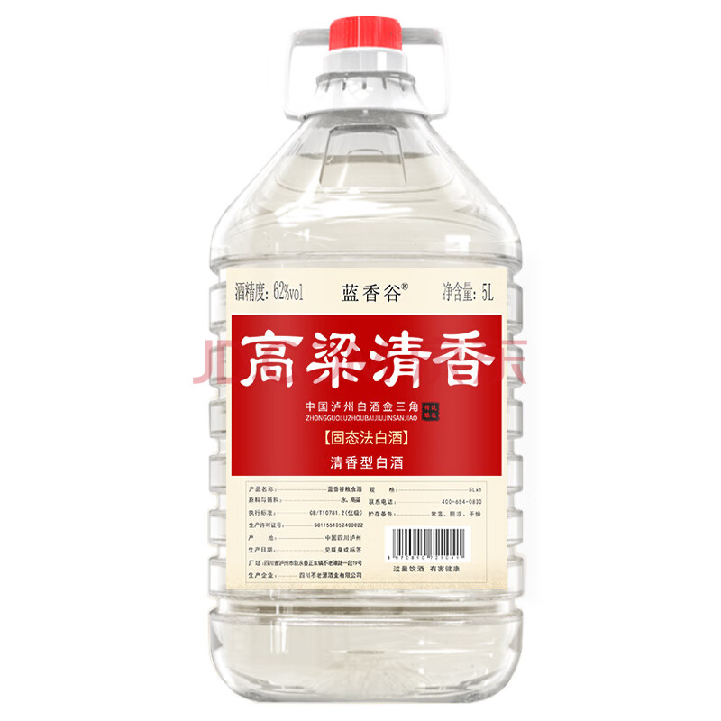 商品相册:蓝香谷泸州糯红高粱酒泡酒粮食酒散装白酒清香型 62度5L 桶装第
