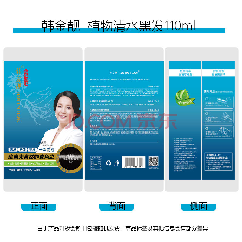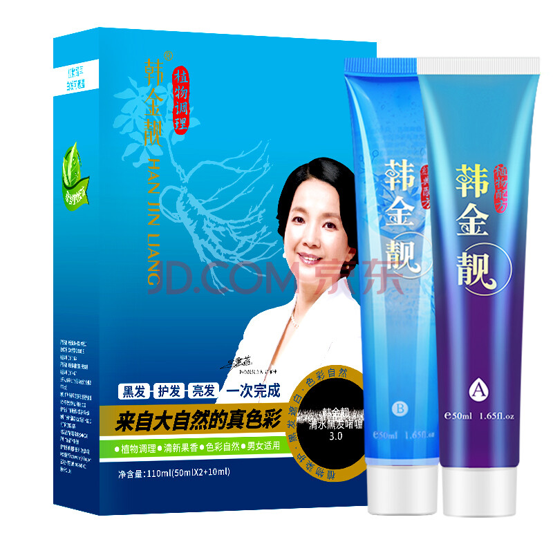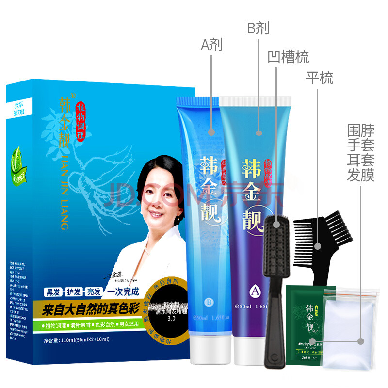 商品相册:韩金靓染发剂植物自然黑清水黑发一梳黑染发男女士白头发染发焗油110ml第