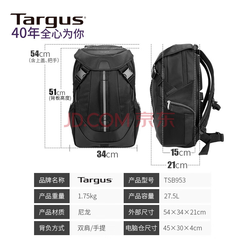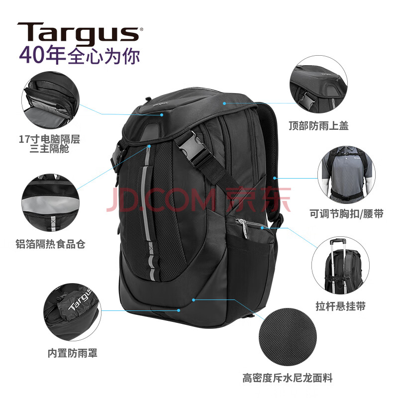 商品相册:泰格斯(TARGUS)泰格斯电竞电脑包17英寸户外双肩包游戏包旅行背包送男友 黑 953第