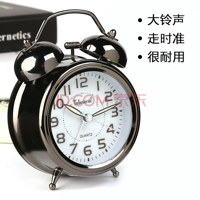 商品相册:天王星(Telesonic)闹钟创意学生儿童大铃声闹表卧室床头简约夜光扫秒机芯传统时钟开学季礼物开学季第