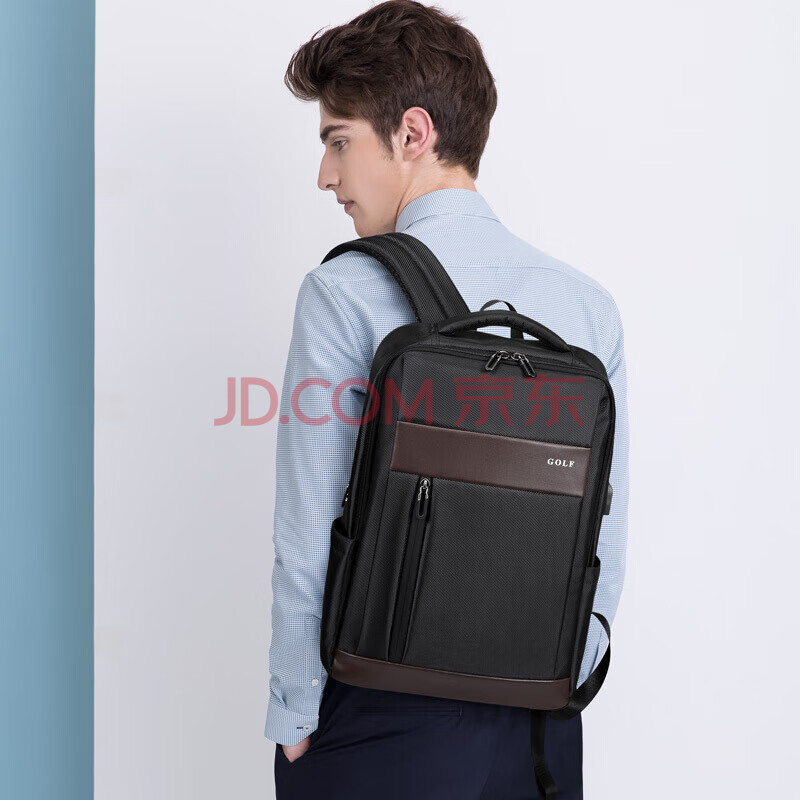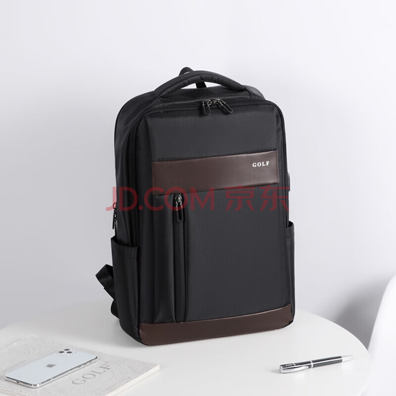 商品相册:高尔夫(GOLF)电脑包多功能15.6英寸笔记本电脑背包USB装置商务男士双肩包黑色第