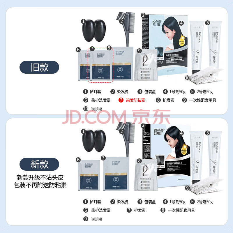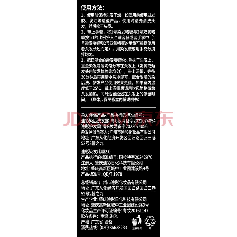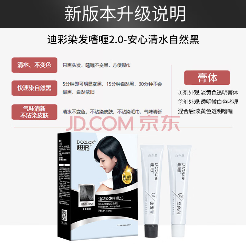 商品相册:迪彩染发剂植物纯自然黑色染发膏50g*2男女士自己在家染发啫喱遮白发第