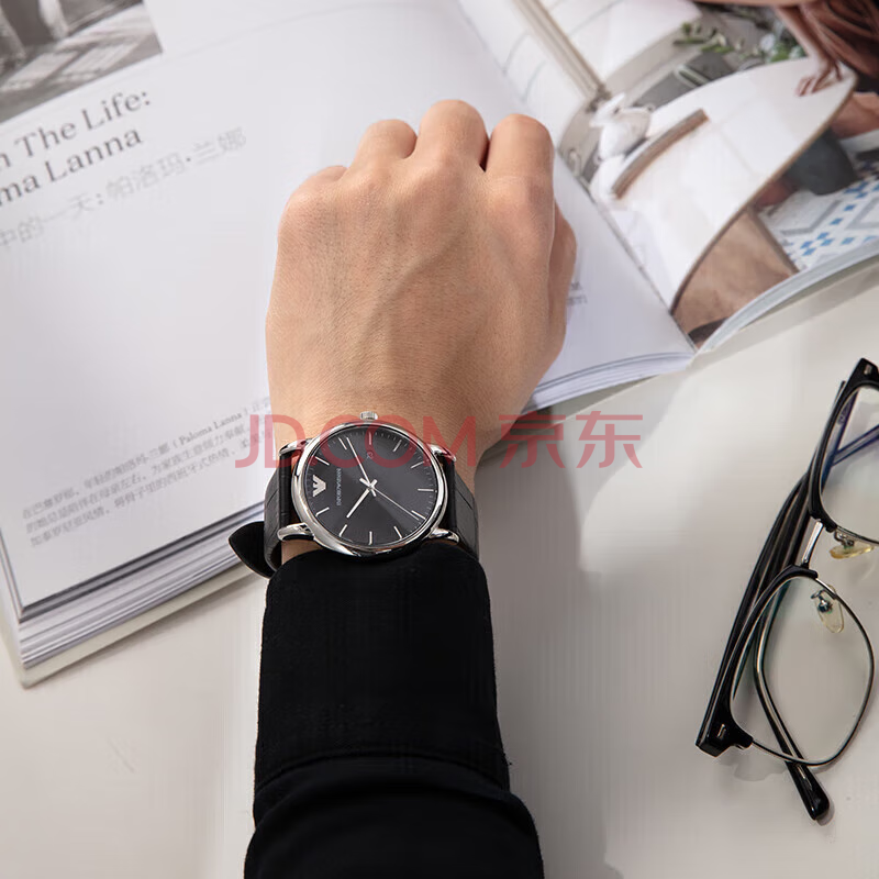 商品相册:EMPORIO ARMANI阿玛尼手表男士 简约商务风黑色皮带欧美表 生日礼物送男友AR2500第