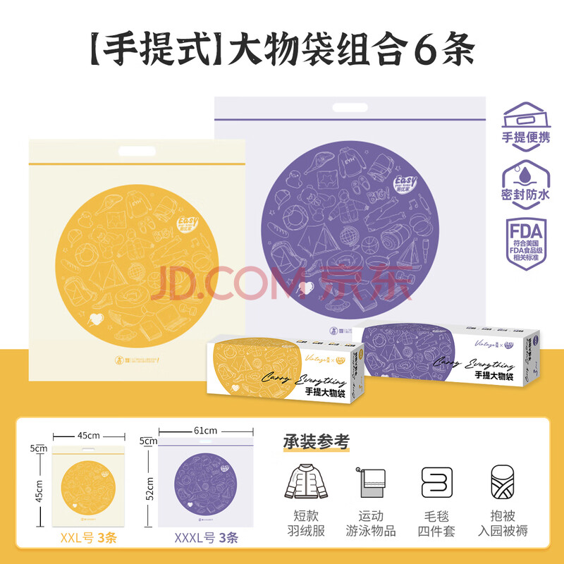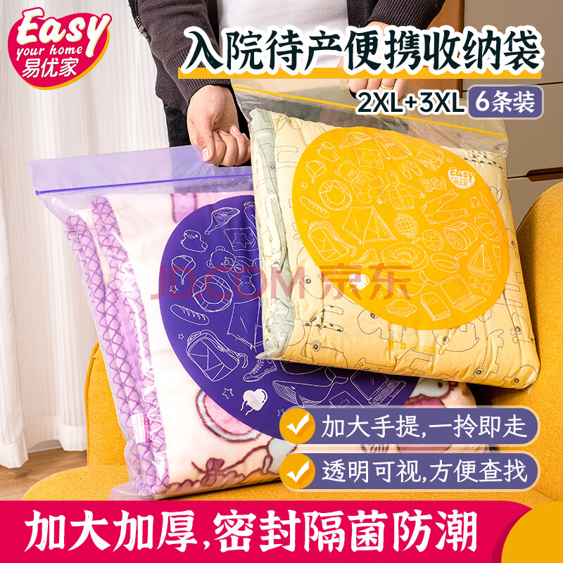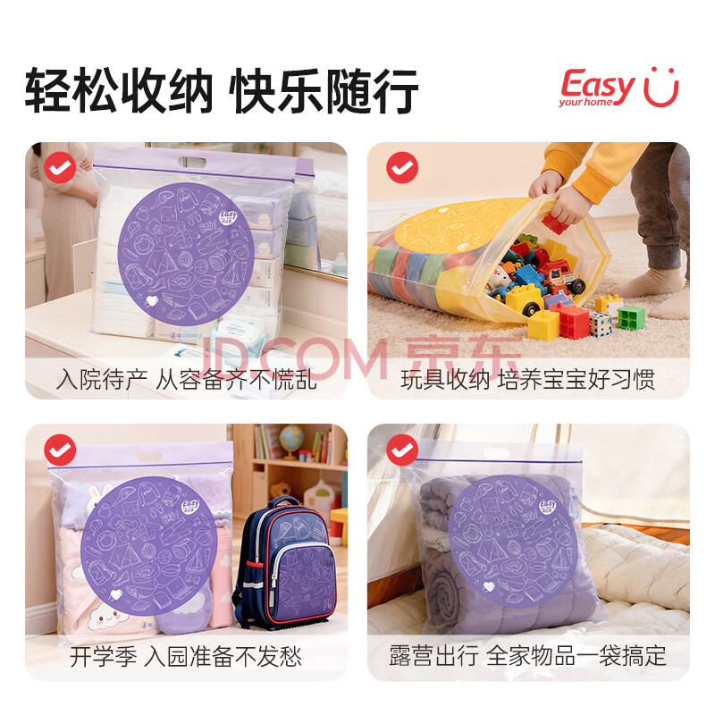 商品相册:易优家 手提式密封袋类真空压缩袋收纳袋被子衣物整理袋儿童入幼儿园第