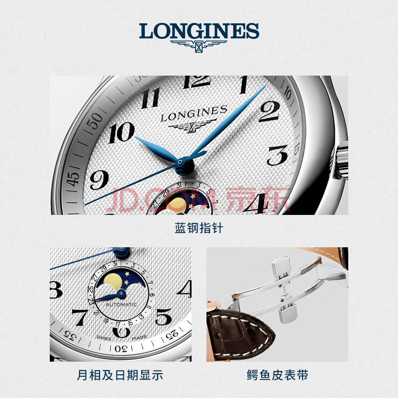 商品相册:浪琴(LONGINES)瑞士手表 名匠系列月相腕表 男士皮带机械表L29094783第