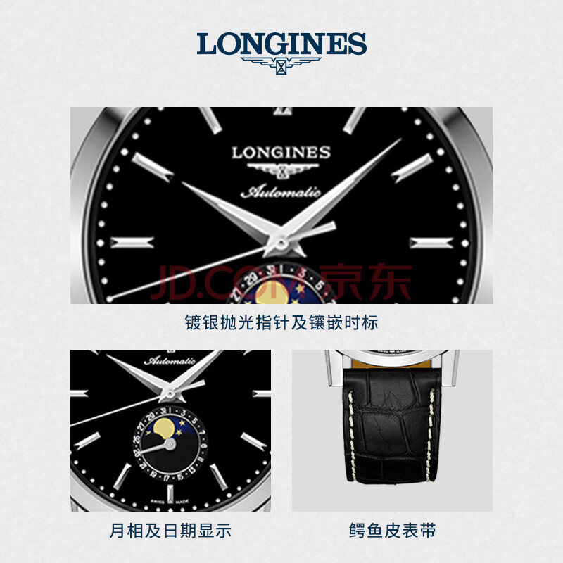 商品相册:浪琴(LONGINES)瑞士手表 1832系列 月相男士皮带机械表 L48264520第