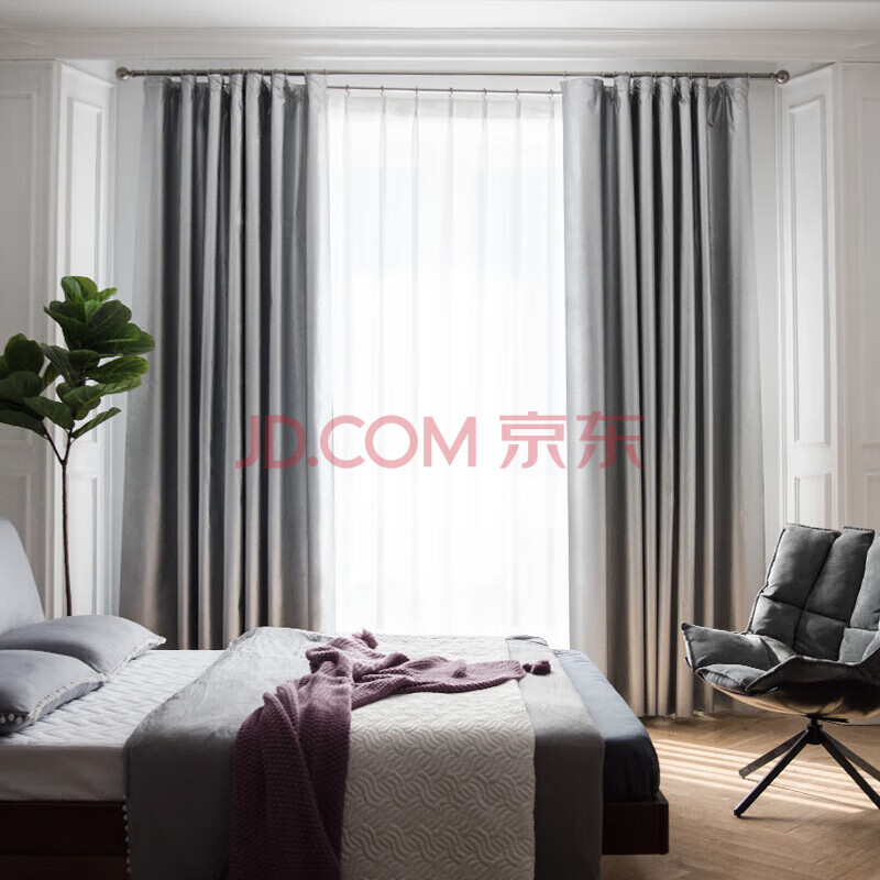 商品相册:铭聚布艺(MINGJU)窗帘 加厚牛津布全遮光遮阳帘隔热防晒成品窗帘布1.8宽*2.4高1片第