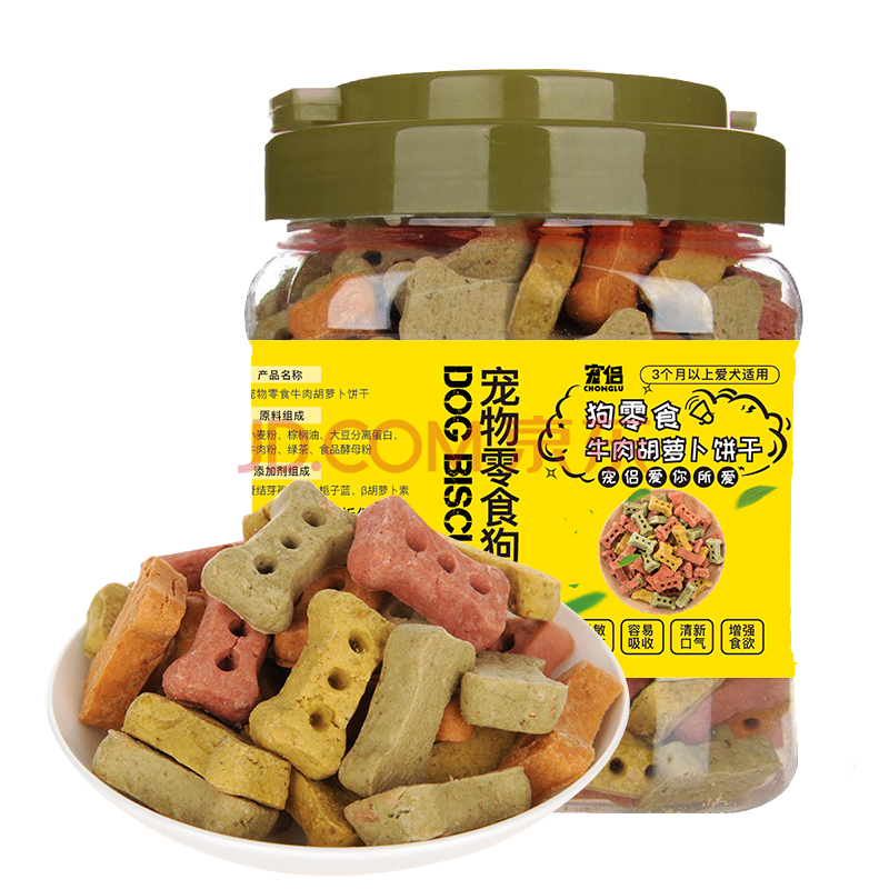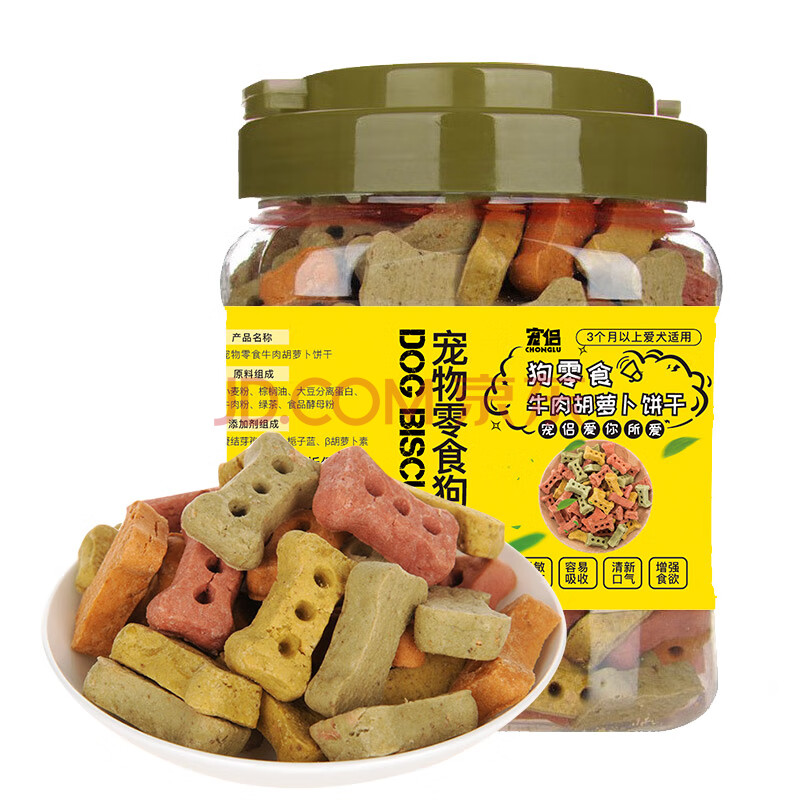 商品相册:宠侣宠物猫狗牛肉胡萝卜肉蔬双拼饼干磨牙洁齿成幼犬训犬奖励零食620g第