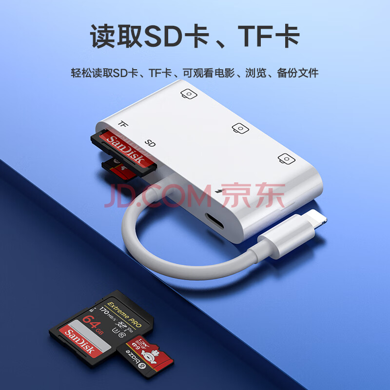 商品相册:毕亚兹 Lightning转3USB OTG转接头 TF卡SD卡六合一转换器 适用苹果lightning口手机外接U盘键盘鼠标 P17第