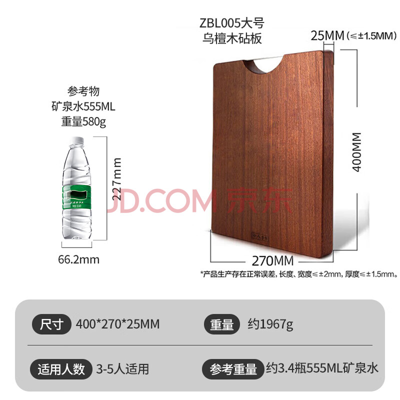 商品相册:十八子作 乌檀木整木切菜板家用加厚大号砧板ZBL005(40x27x2.5cm)第