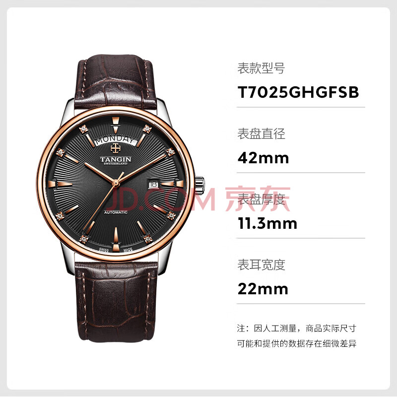 商品相册:天珺(TANGIN)瑞士手表男 机械男士手表皮带瑞表 送男友 T7025GHGFSB第