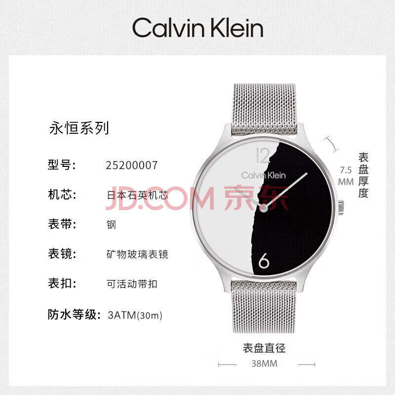 商品相册:Calvin KleinCK手表永恒款钢带黑白个性石英女表女神节新年礼物女25200007第