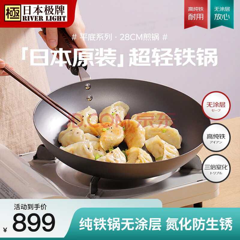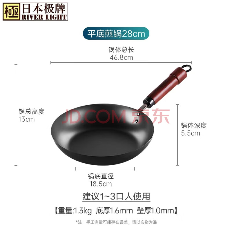 商品相册:RIVER LIGHT日本极牌进口平底煎锅无涂层煎蛋煎饼锅电磁炉燃气通用28CM早餐锅第