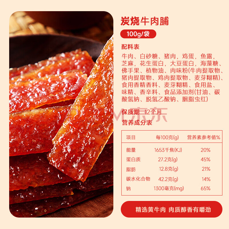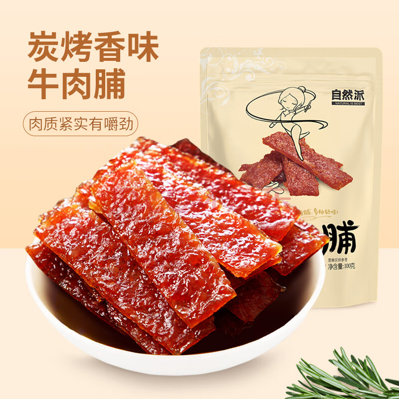 商品相册:自然派炭烧味牛肉脯牛肉干肉脯独立包装即食小吃休闲零食100g/袋第