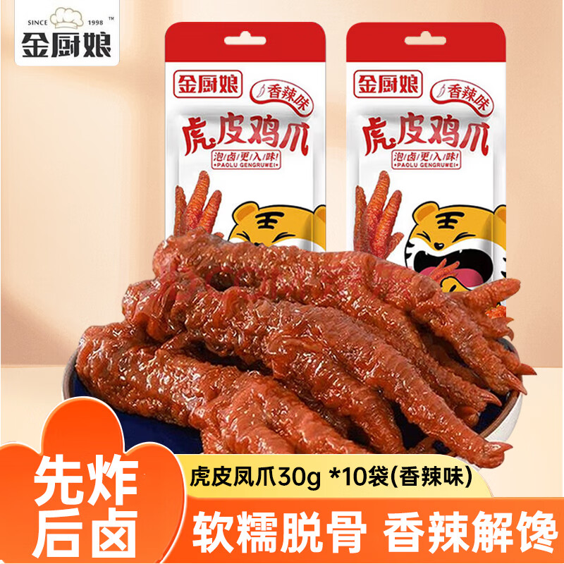 商品相册:金厨娘 虎皮凤爪30g *10袋(香辣味) 独立包装虎皮鸡爪休闲零食小吃第