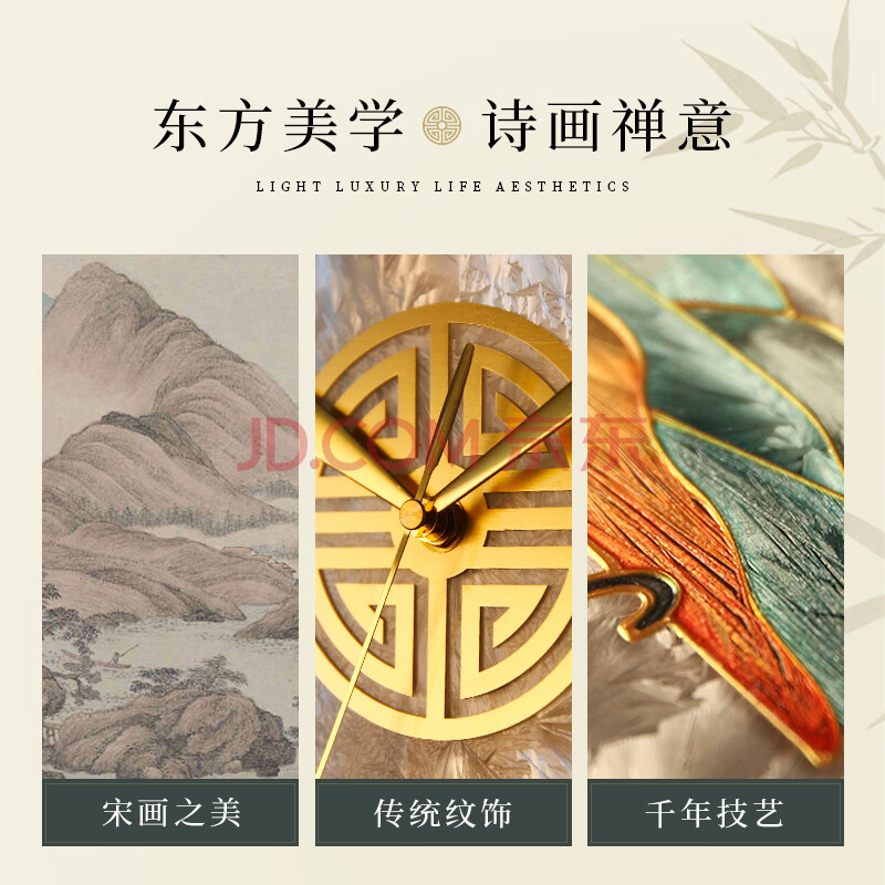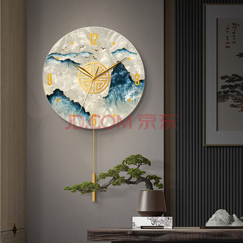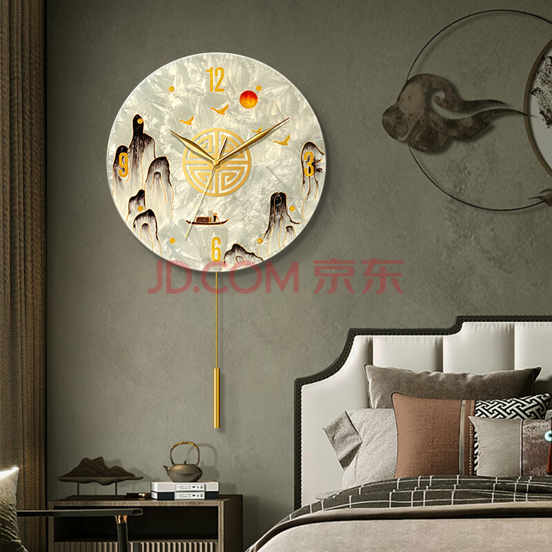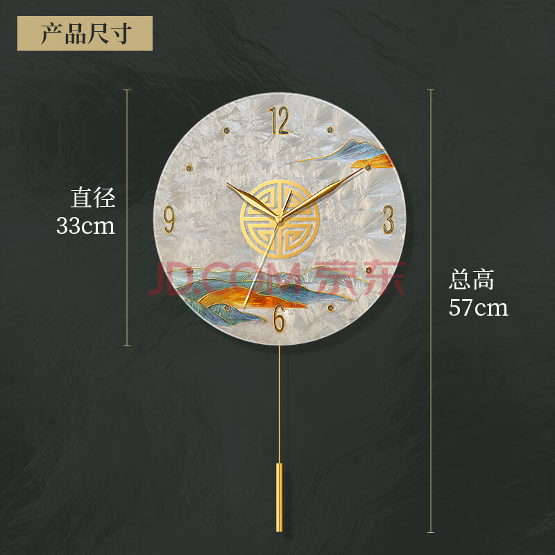 商品相册:码仕 挂钟新中式琉璃珐琅彩手工彩绘客厅装饰摆钟石英挂表旭日 33cm第