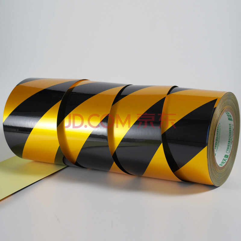 商品相册:天章(TANGO)PET反光警示胶带100mm*45米骑行反光贴路面车身衣服黑黄斜纹斑马宽胶带地标线地面安全标识第