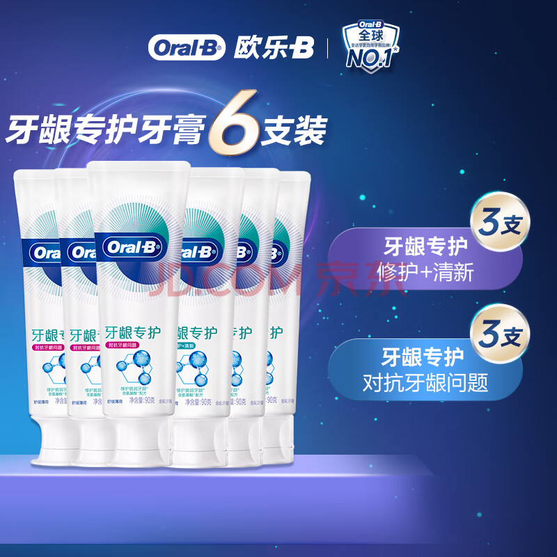 商品相册:欧乐B氨基酸小白管牙膏护龈减少牙龈问题90g*6支装共540g京东自营第