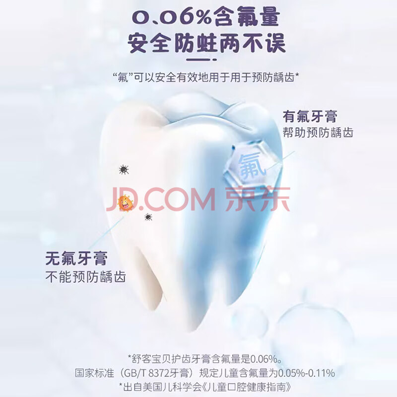 商品相册:舒客宝贝儿童牙膏修护牙釉质2-12岁含氟防蛀抗酸含钙60g草莓酸奶味1支装第