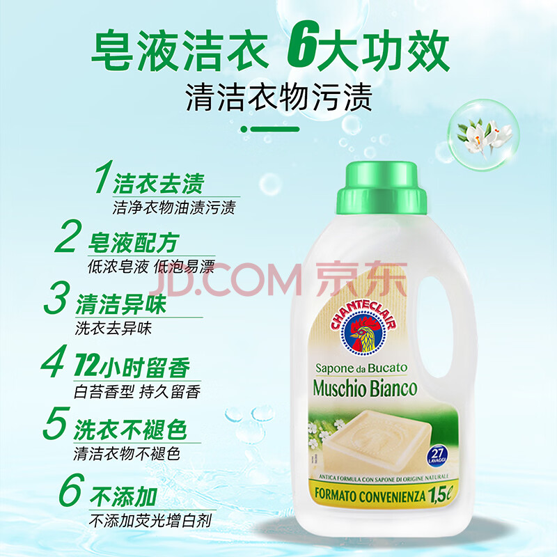商品相册:大公鸡管家(CHANTE CLAIR) 液态洗衣皂洗衣液1500ml 白苔香大公鸡洗衣液 意大利进口第